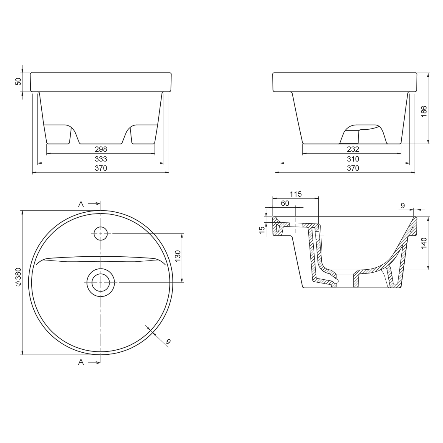 Sapho YUVA keramické umyvadlo zápustné, Ø 38cm, bílá TU0652