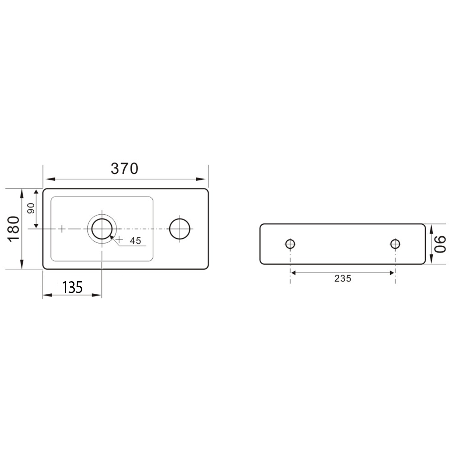 Sapho ZOE keramické umývátko 37x18cm, otvor pro baterii vpravo, bílá AR495