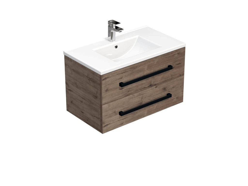SAT Koupelnová skříňka s černou úchytkou a umyvadlem SAT Cube Way 80x53x46 cm dub Wellington mat CUBE46C802DWMOD