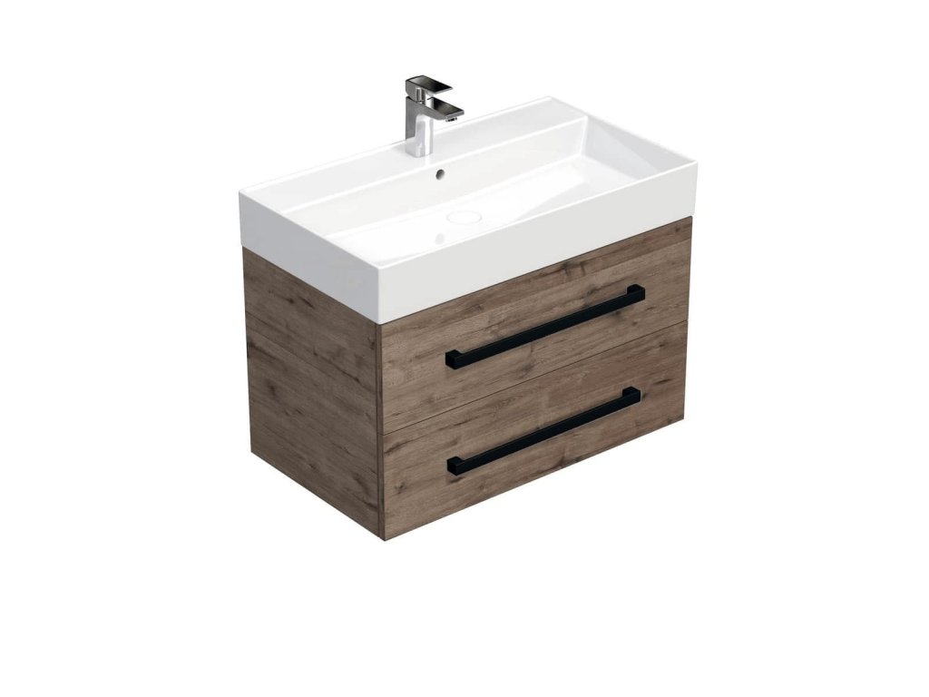 SAT Koupelnová skříňka s černou úchytkou a umyvadlem SAT Cube Way 80x53x46 cm dub Wellington mat CUBE46C802DWSAT