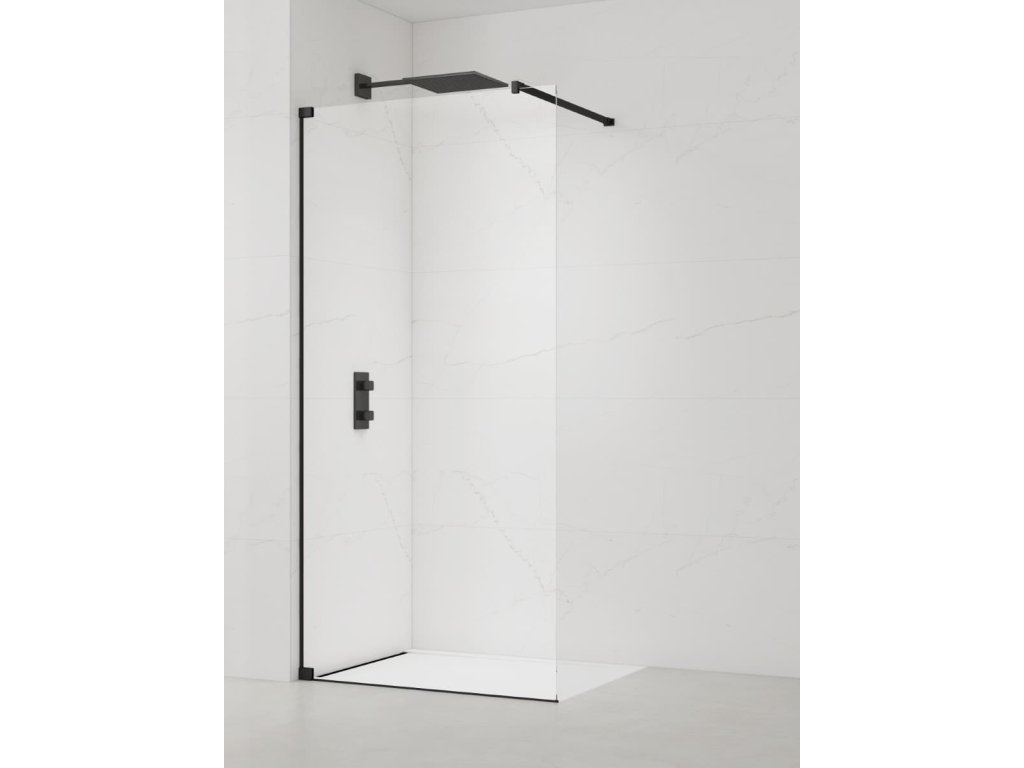 Reálné rozměry (stavitelnost) koutu 66,4-67,1 cm, viz. montážní návod. Sprchová zástěna walk-in s panty a zavětrováním v černém matném provedení, výplň je z čirého skla bez dekoru. Produkt je opatřen povrchovou úpravou Easy Clean, která usnadňuje čistění a minimalizuje usazování vodního kamene. Nelze otevřít - pevný systém. Určení - levá i pravá orientace. ZÁRUKA 5 LET, dostupnost náhradních dílů 10 LET.Dodatočné parametre