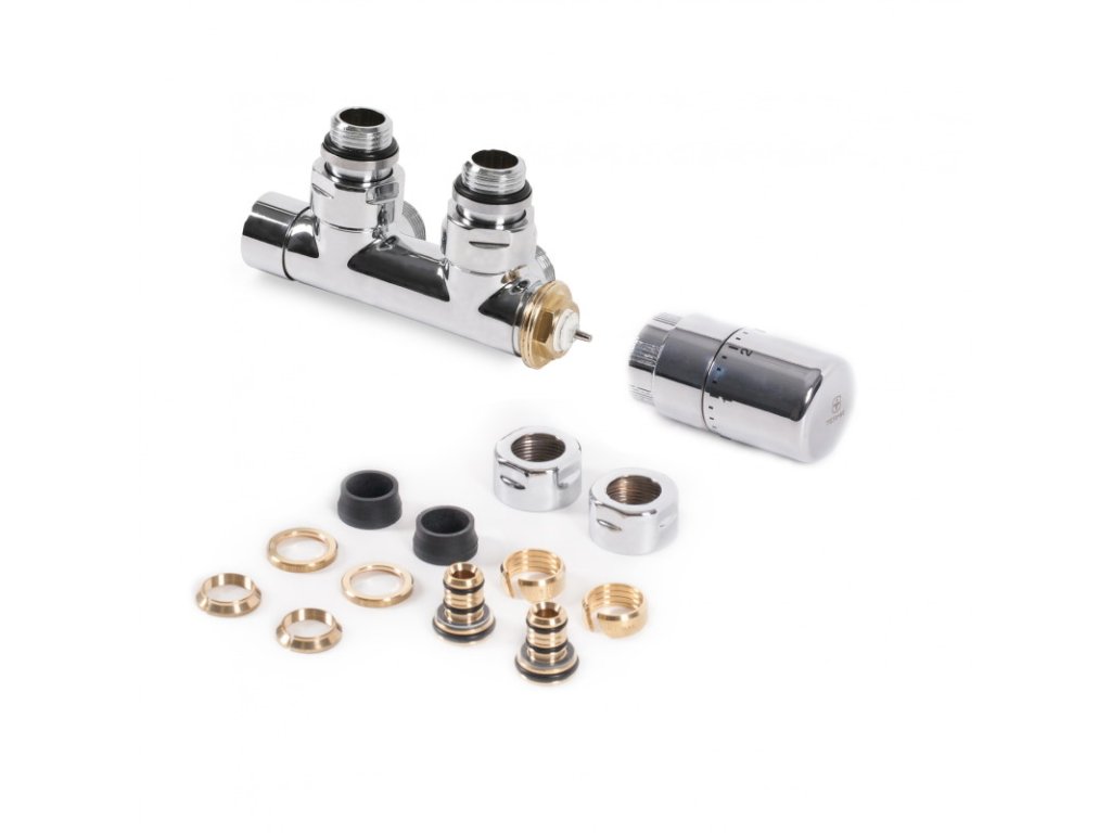 Levá termostatická středová sada obsahuje: termostatický ventil, uzavírací ventil, termostatickou hlavici SLIM, adaptéry AL-PEX ∅ 16x2 a měď ∅ 15. Termostatické ventily s designovou hlavicí Slim slouží k regulaci tekutin v topném systému. Jsou navrženy tak, aby udržovaly konstantní nastavenou teplotu v místnosti a zároveň jsou úsporné vůči energiím. Vlastnosti: Připojovací rozteč trubek: 50 mm Připojovací závit na radiátoru: G 1/2" Připojení na trubky: 24x19 Připojovací závit hlavice: M30x1,5 Použitelné tekutiny: voda, nemrznoucí roztoky Sada obsahuje šroubení na všechny typy trubek, které není třeba dodatečně dokoupit. Spolu s ventilem doporučujeme i zakoupení dekorativní krycí sady, která dokonale schová trubky pro přívod vody. Všechny krycí sady si můžete prohlédnout v příslušenství pro designové ventily.Dodatočné parametre
