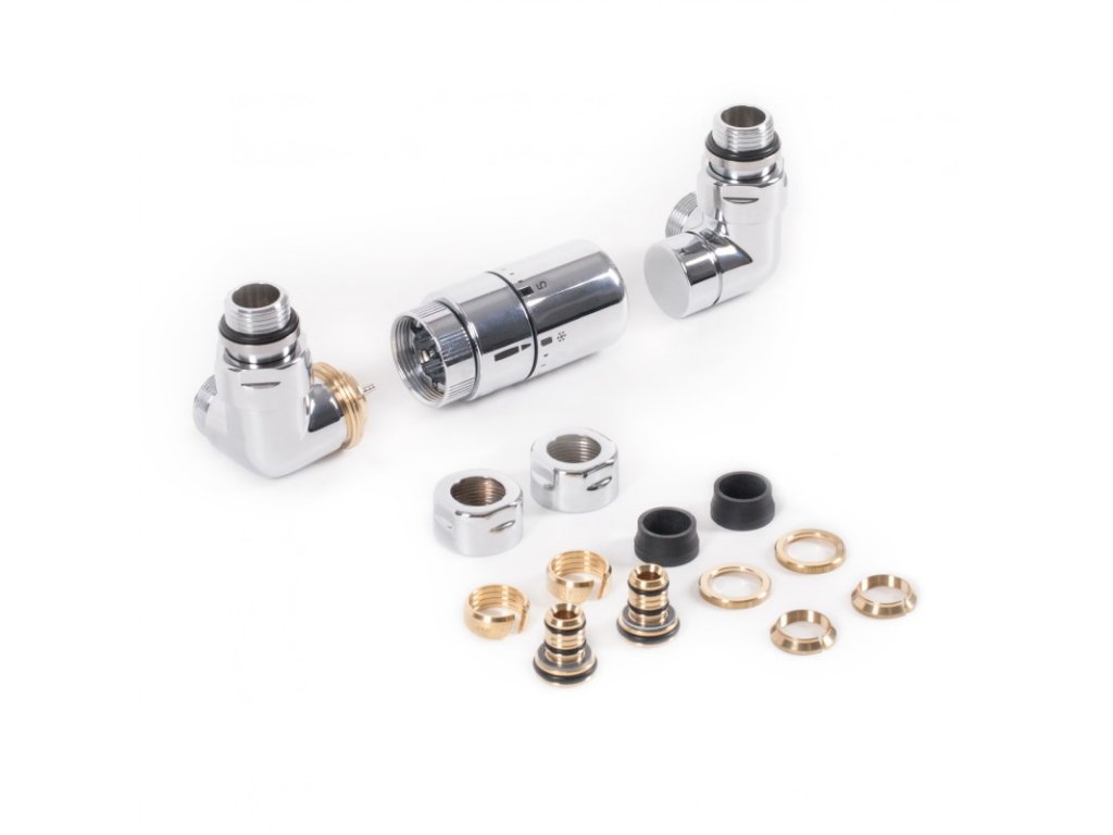 Levá termostatická úhlová sada obsahuje: termostatický ventil, uzavírací ventil, termostatickou hlavici SLIM, adaptéry AL-PEX ∅ 16x2 a měď ∅ 15. Termostatické ventily s designovou hlavicí Slim slouží k regulaci tekutin v topném systému. Jsou navrženy tak, aby udržovaly konstantní nastavenou teplotu v místnosti a zároveň jsou úsporné vůči energiím. Vlastnosti: Připojovací závit na radiátoru: G 1/2" Připojení na trubky: 24x19 Připojovací závit hlavice: M30x1,5 Použitelné tekutiny: voda, nemrznoucí roztoky Sada obsahuje šroubení na všechny typy trubek, které není třeba dodatečně dokoupit. Spolu s ventilem doporučujeme i zakoupení dekorativní krycí sady, která dokonale schová trubky pro přívod vody. Všechny krycí sady si můžete prohlédnout v příslušenství pro designové ventily.Dodatočné parametre