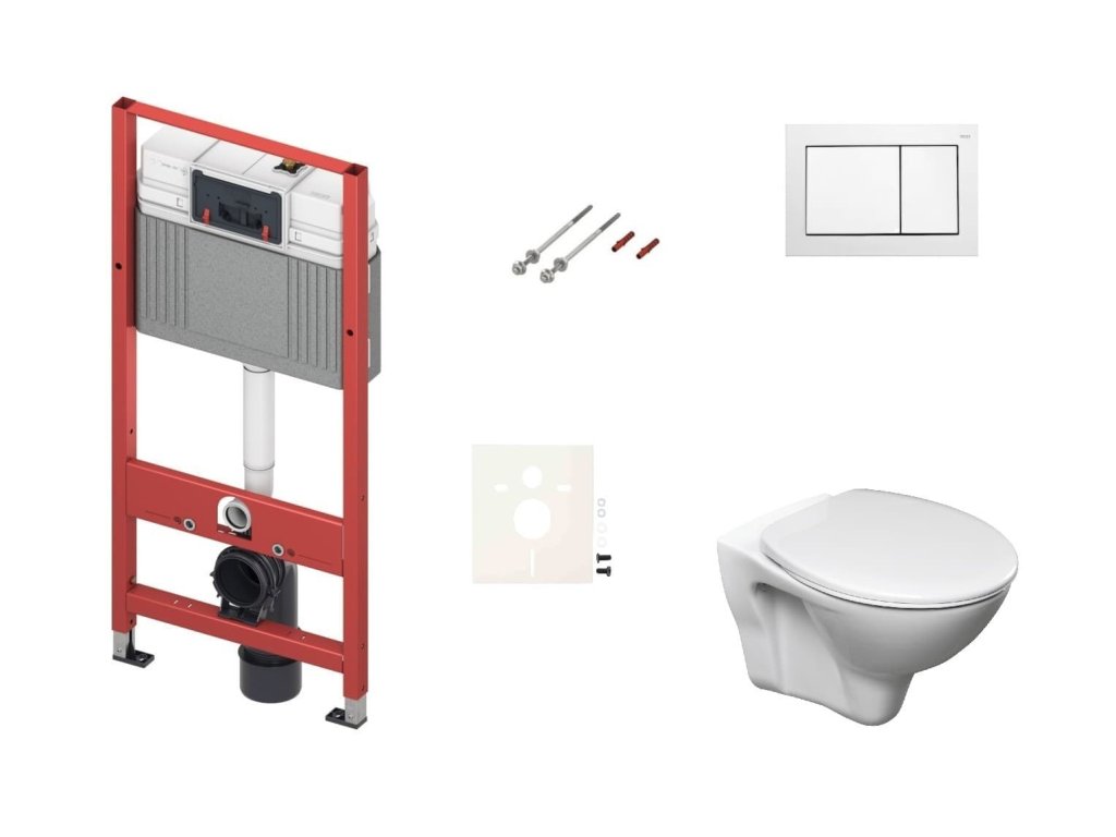 Závěsný wc set - sada obsahuje modul do lehkých stěn / předstěnová, WC, WC nádržku TECE a WC sedátko. WC prkénko je vyrobeno z materiálu Duroplast. Ovládací tlačítko je z materiálu plast a je v barevném provedení bílá.Doplňkové parametry
