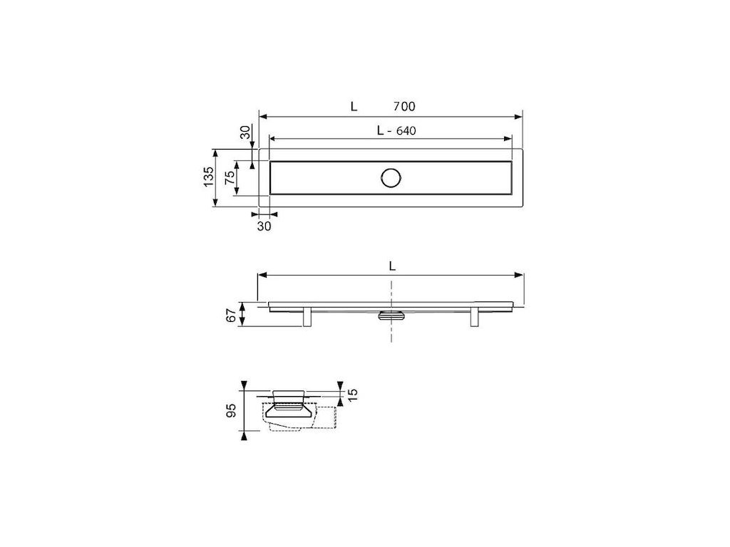 Sprchový žlab z nerezi o šířce roštu 64 cm. Minimální stavební výška 7 cm. Mřížka v dekoru zebra. Průměr odpadu pro připojení DN 50. Sifon je součástí balení. Nohy jsou součástí balení. V lesklém provedení.Doplňkové parametry