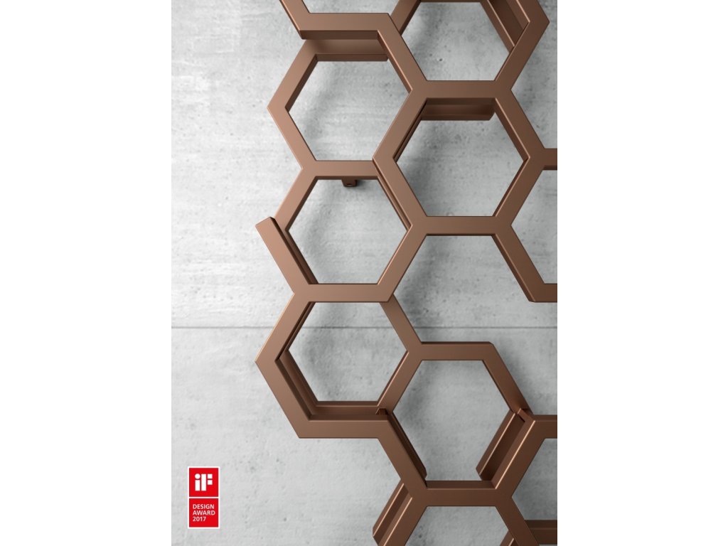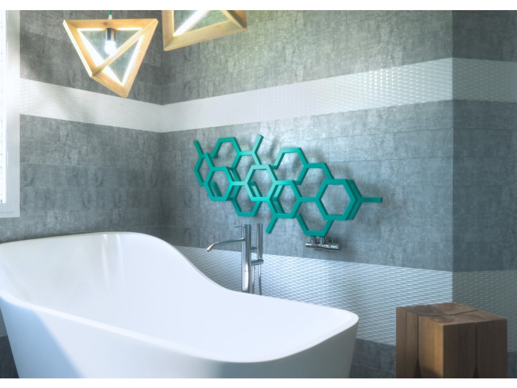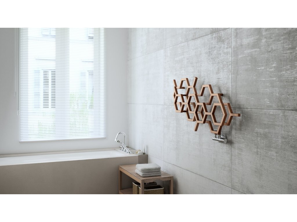 Radiátor Hex je unikátní tvarovaný radiátor, který spojuje funkčnost a vysokou estetickou úroveň. Nabízí nejnovější trendy moderního užitkového designu. Koncepce radiátoru HEX byla inspirována nepravidelnou strukturou rozrůstajícího se tkaniva na stěně. V případě zájmu o jiný rozměr nebo barevné provedení se podívejte i na TERMA Hex vodní designový radiátor.-