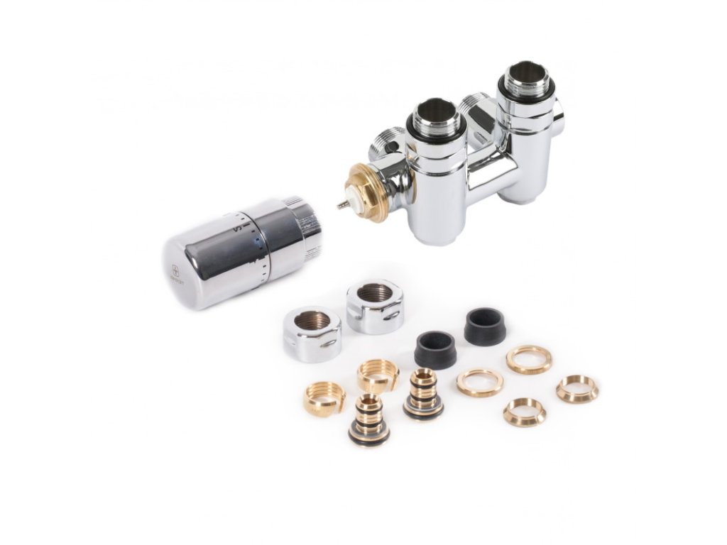 Pravá termostatická středová sada obsahuje: termostatický ventil, uzavírací ventil, termostatickou hlavici SLIM, adaptéry AL-PEX ∅ 16x2 a měď ∅ 15. Možnost kombinovaného připojení - napojení topné tyče skrz ventil. Regulátory a topné tyče si můžete prohlédnout ZDE. Termostatické ventily s designovou hlavicí Slim slouží k regulaci tekutin v topném systému. Jsou navrženy tak, aby udržovaly konstantní nastavenou teplotu v místnosti a zároveň jsou úsporné vůči energiím. Vlastnosti: Připojovací rozteč trubek: 50 mm Připojovací závit na radiátoru: G 1/2" Připojení na trubky: 24x19 Připojovací závit hlavice: M30x1,5 Použitelné tekutiny: voda, nemrznoucí roztoky Sada obsahuje šroubení na všechny typy trubek, které není třeba dodatečně dokoupit. Spolu s ventilem doporučujeme i zakoupení dekorativní krycí sady, která dokonale schová trubky pro přívod vody. Všechny krycí sady si můžete prohlédnout v příslušenství pro designové ventily.Doplňkové parametry