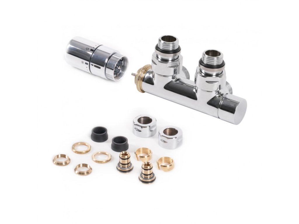 Pravá termostatická středová sada obsahuje: termostatický ventil, uzavírací ventil, termostatickou hlavici SLIM, adaptéry AL-PEX ∅ 16x2 a měď ∅ 15. Termostatické ventily s designovou hlavicí Slim slouží k regulaci tekutin v topném systému. Jsou navrženy tak, aby udržovaly konstantní nastavenou teplotu v místnosti a zároveň jsou úsporné vůči energiím. Vlastnosti: Připojovací rozteč trubek: 50 mm Připojovací závit na radiátoru: G 1/2" Připojení na trubky: 24x19 Připojovací závit hlavice: M30x1,5 Použitelné tekutiny: voda, nemrznoucí roztoky Sada obsahuje šroubení na všechny typy trubek, které není třeba dodatečně dokoupit. Spolu s ventilem doporučujeme i zakoupení dekorativní krycí sady, která dokonale schová trubky pro přívod vody. Všechny krycí sady si můžete prohlédnout v příslušenství pro designové ventily.Doplňkové parametry